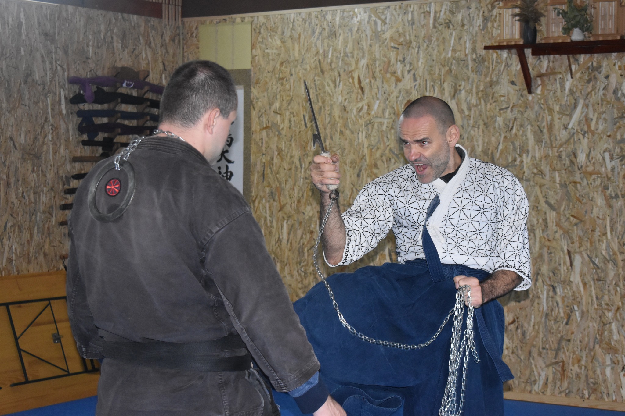 Дождливиот ден во саботата, не’ натера да го одржиме семинарот за КјокетсуШоге во Хомбу Доџото на Буџинкан Македонија, иако тоа оружје навистина бара голем и отворен простор за тренинг.